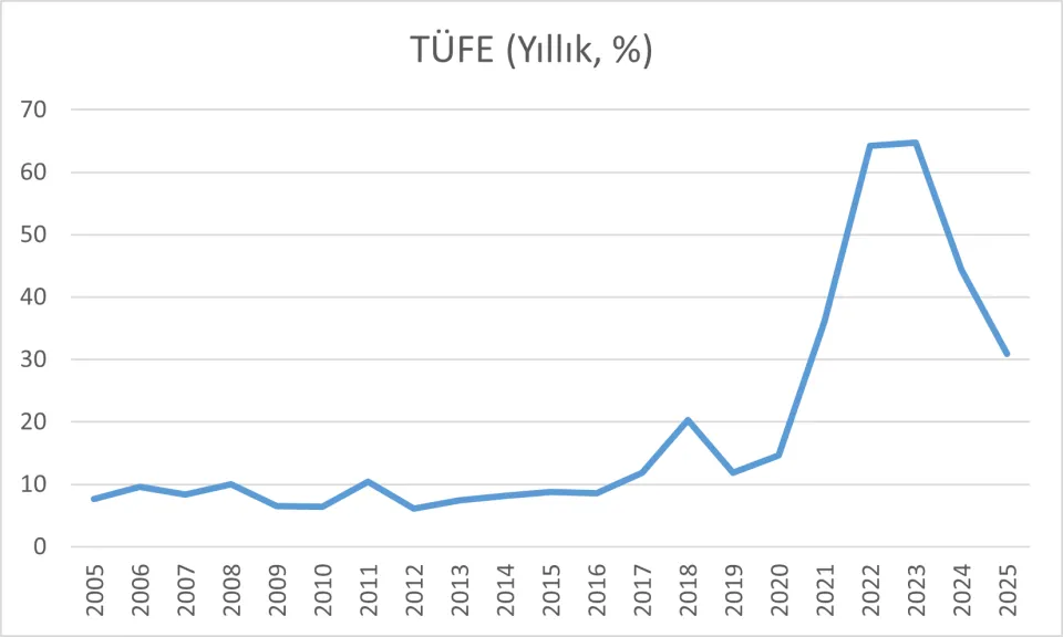 Tablo 1: Türkiye'de Enflasyon (2005-2025, Yıllık, TÜFE, %)